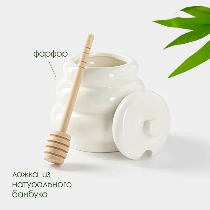Ёмкость для мёда BellaTenero «Бочонок», 400 мл, с ложкой, фарфор, белая — Характеристики
