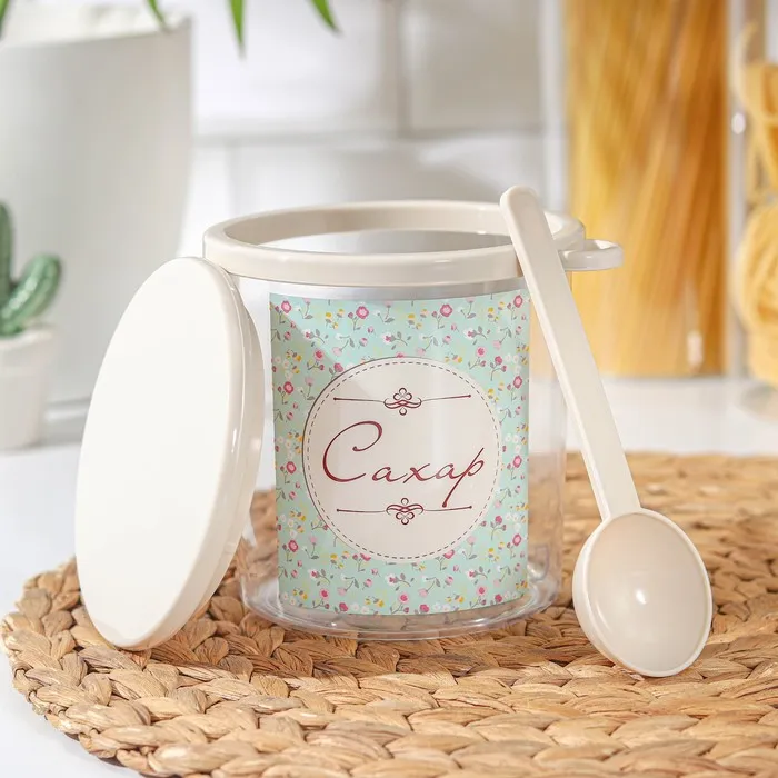 Ёмкость для сахара с ложкой «Ассорти. Сахар», 700 мл, пластик, МИКС — Характеристики