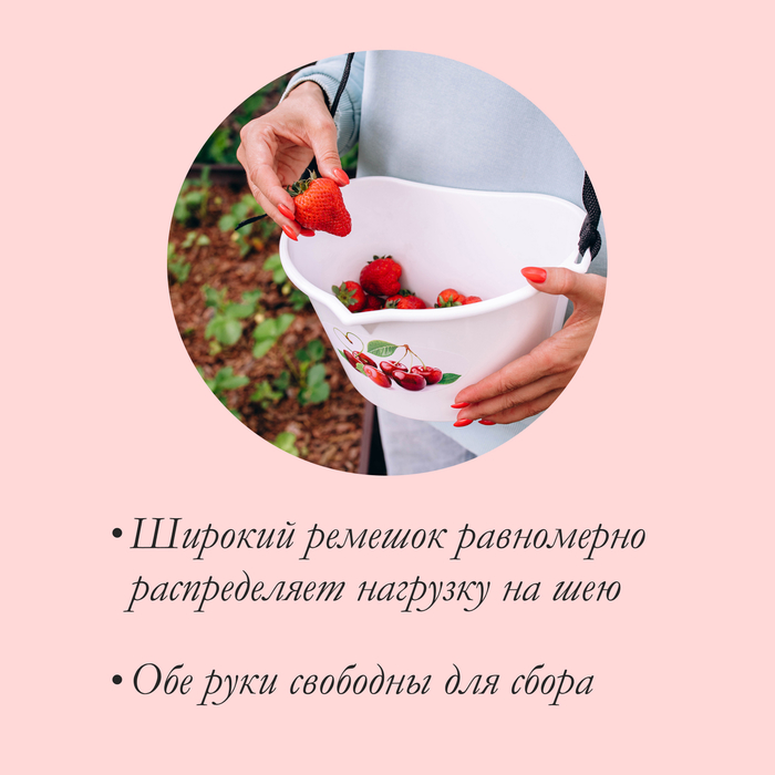 - Лёгкая ёмкость дополнительно не утяжелит вес урожая и сэкономит ваши силы при сборе ягод.