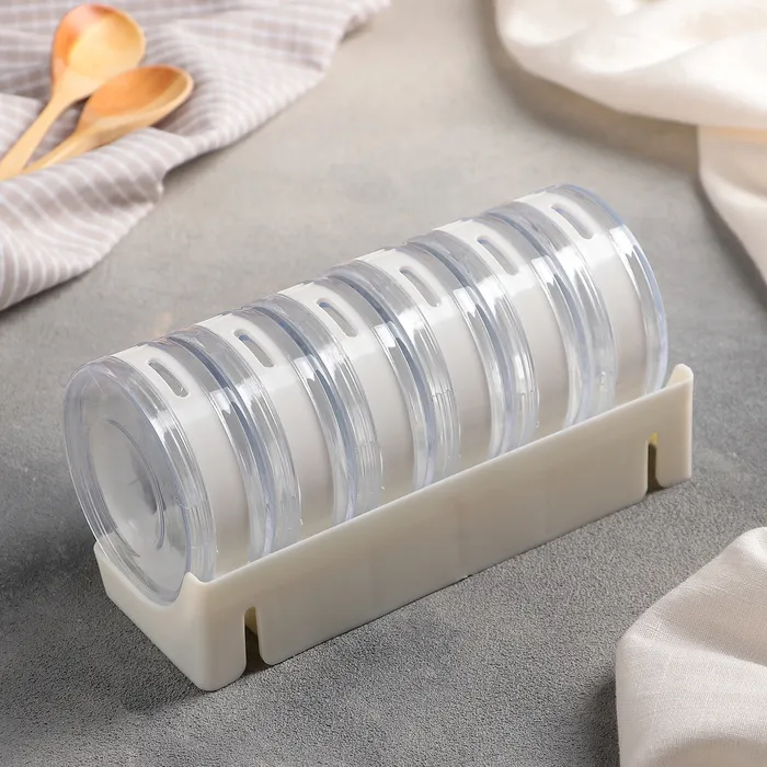 Ёмкости для специй «Цилиндр», набор 6 шт. на подставке, 19×8×9 см, пластик — Характеристики