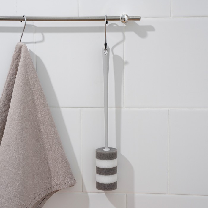 - Ёршик имеет удобную тонкую ручку и отверстие для подвешивания, можно хранить в подвешенном положении.