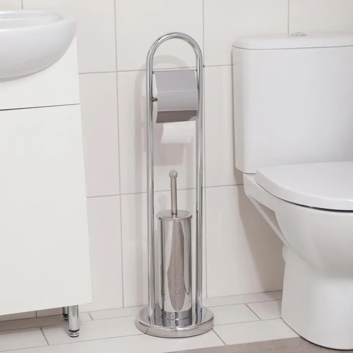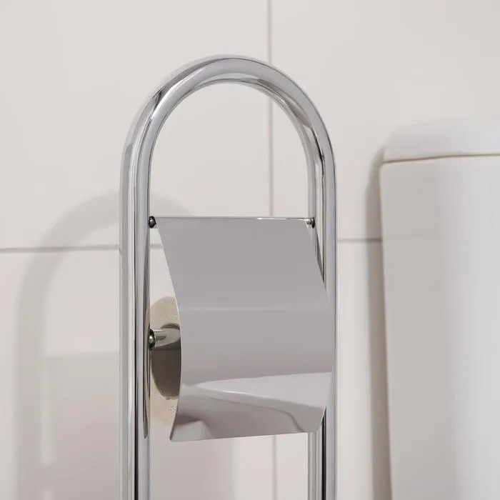 Ёрш для унитаза напольный Accoona, 21,5×21,5×81 см, с держателем для туалетной бумаги, хром