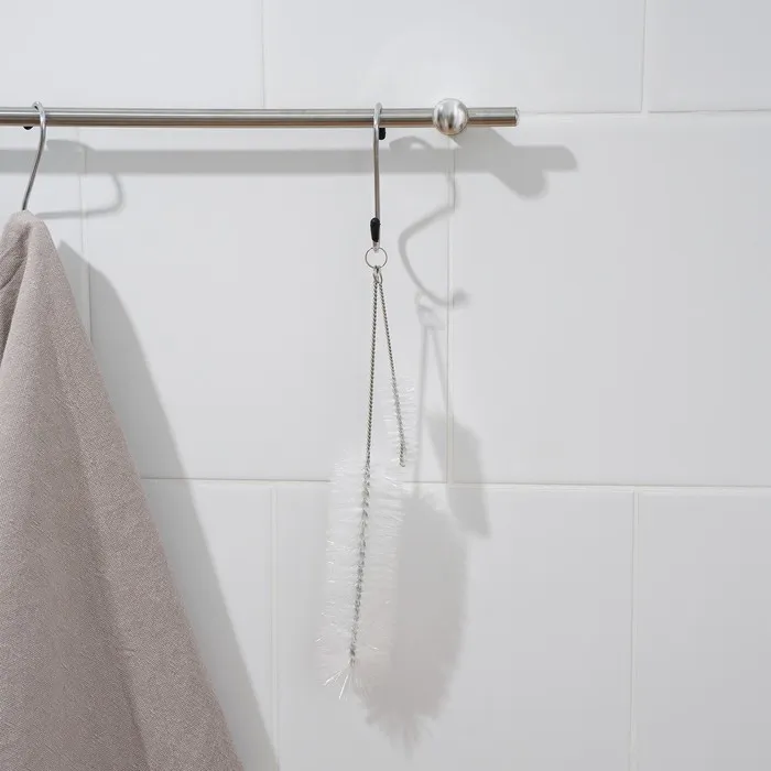 - Кухонные ёршики подходят для мытья посуды, банок, колб кальянов, ваз, кувшинов, чайников, бутылок, термосов, стаканов, графинов и прочей глубокой посуды с узким горлышком.