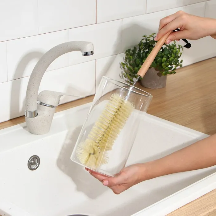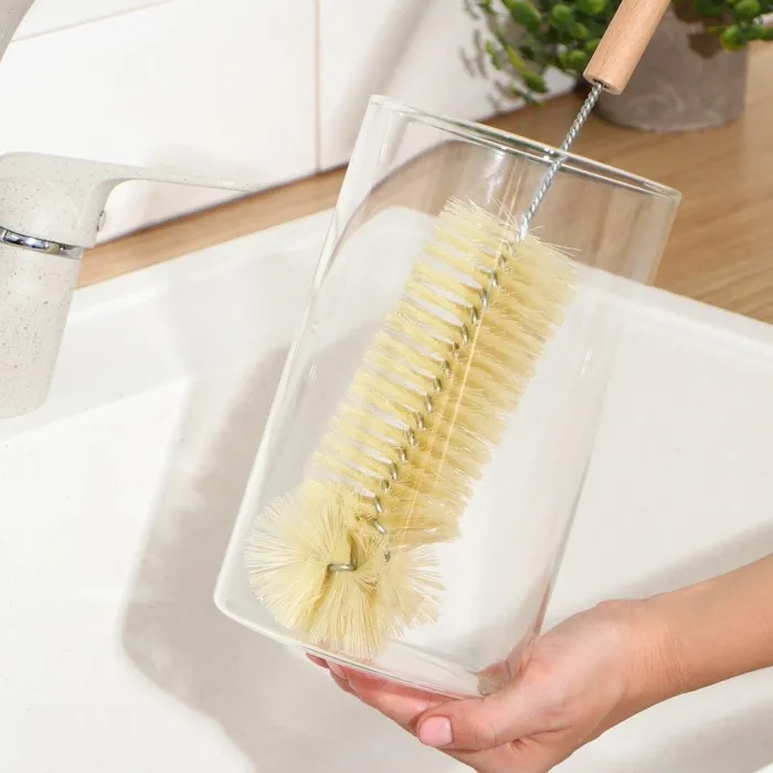 • Кухонный ёрш подходит для мытья посуды, детских бутылочек, сосок, банок, колб кальянов, ваз, кувшинов, чайников, бутылок, термосов, стаканов, графинов и прочей глубокой посуды с узким горлышком.