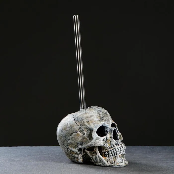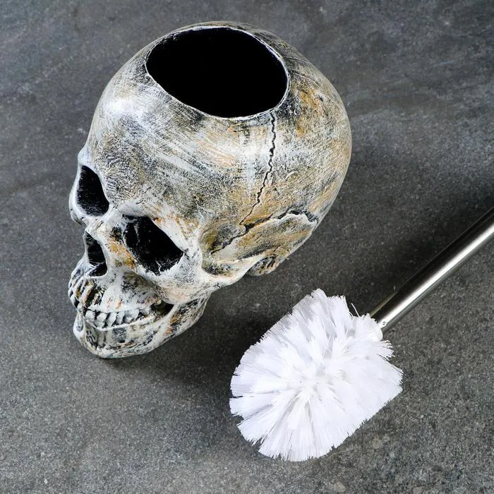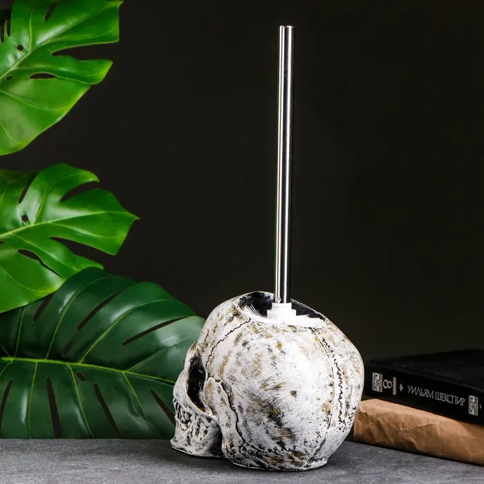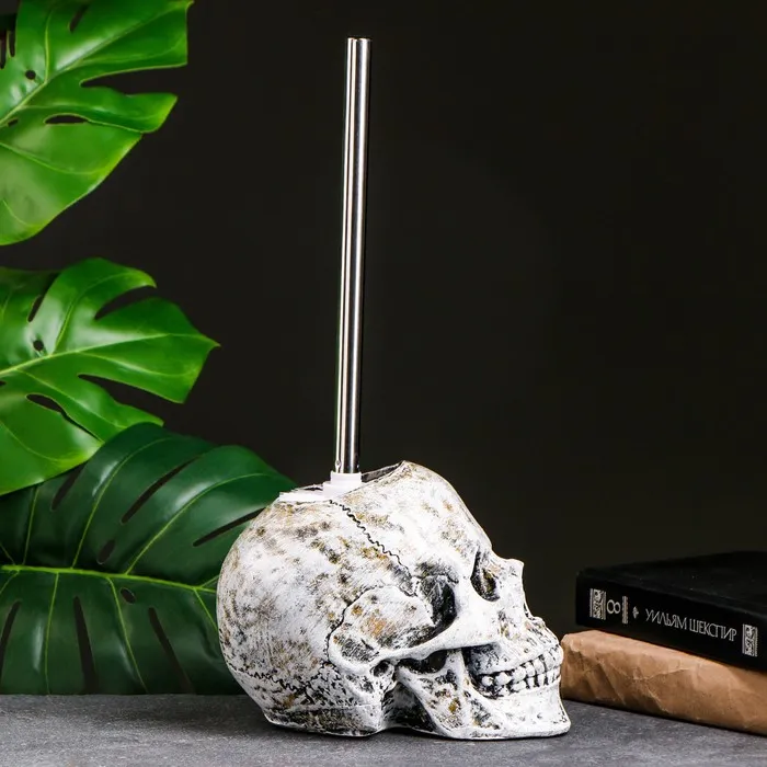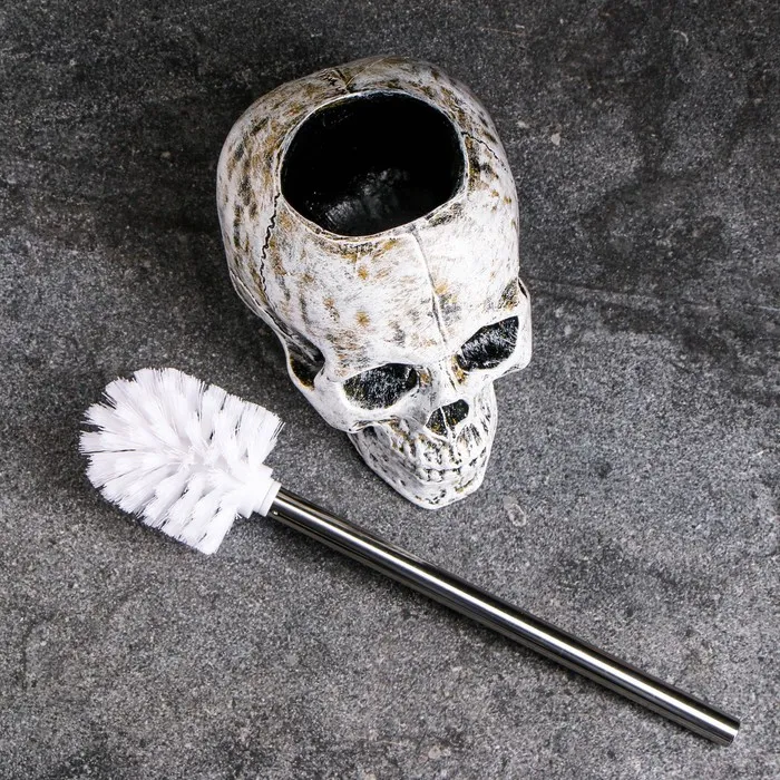 Ёршик для унитаза «Череп», стальная ручка, 16×15×22 см, белый — Характеристики