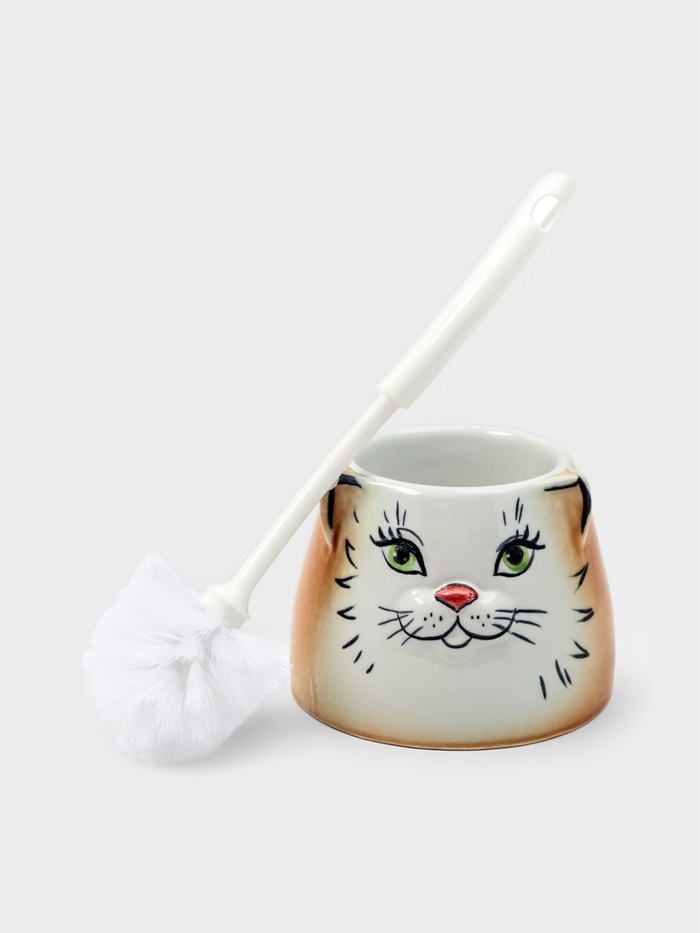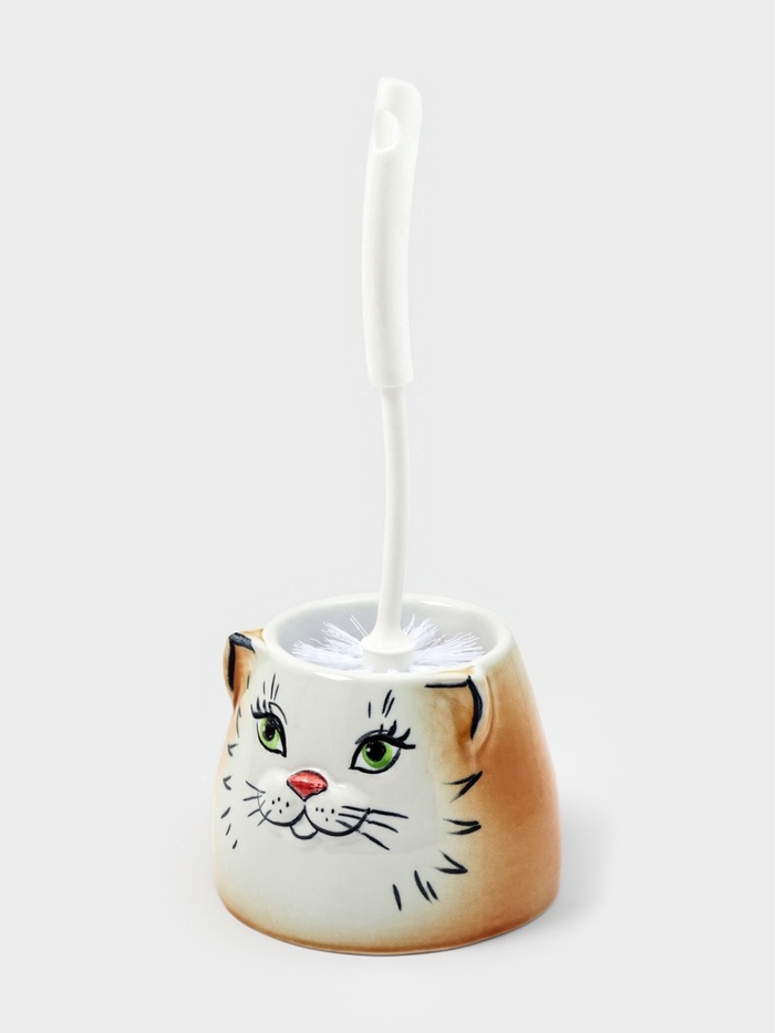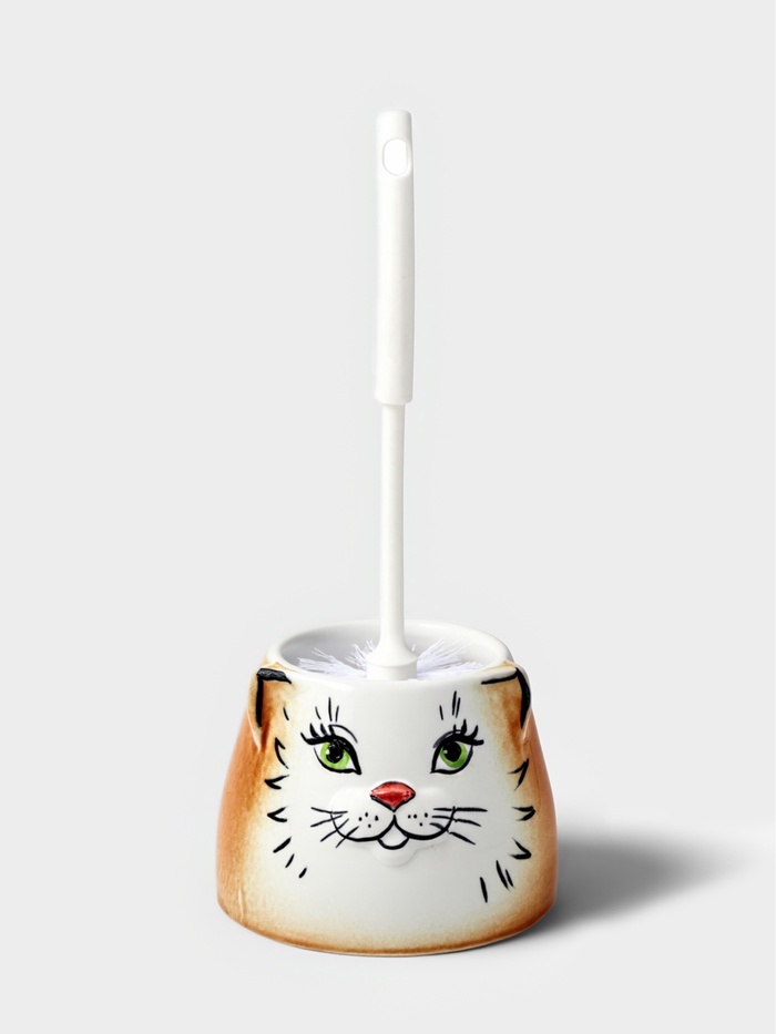 Туалетный ёршик с подставкой «Кошка» - функциональный аксессуар для поддержания чистоты в санузле. Фарфоровая подставка с декоративным рисунком сочетает практичность и эстетику, органично дополняя интерьер ванной комнаты.