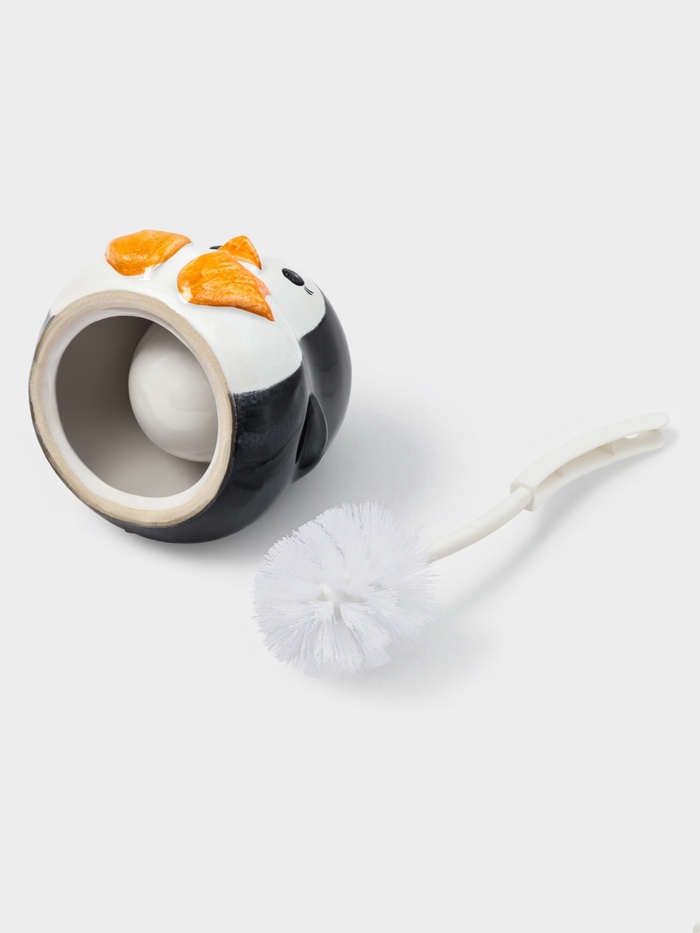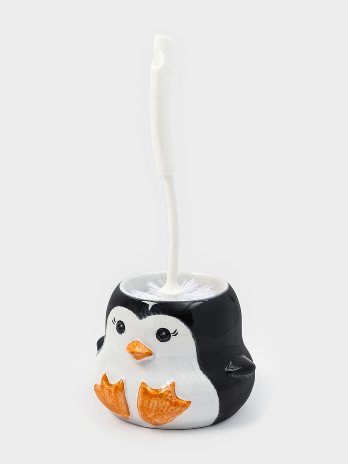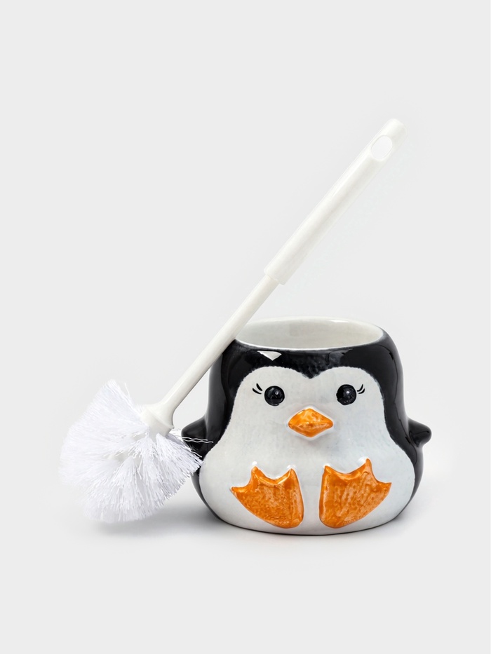 Туалетный ёршик с подставкой «Пингвин» - функциональный аксессуар для поддержания чистоты в санузле. Фарфоровая подставка с декоративным рисунком сочетает практичность и эстетику, органично дополняя интерьер ванной комнаты.