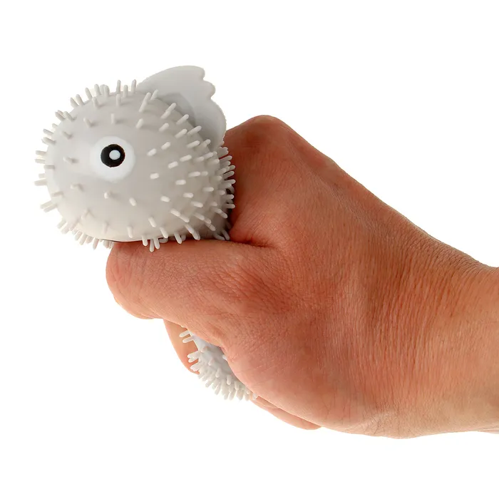 - При нажатии на игрушку снижается уровень стресса и развивается сила рук