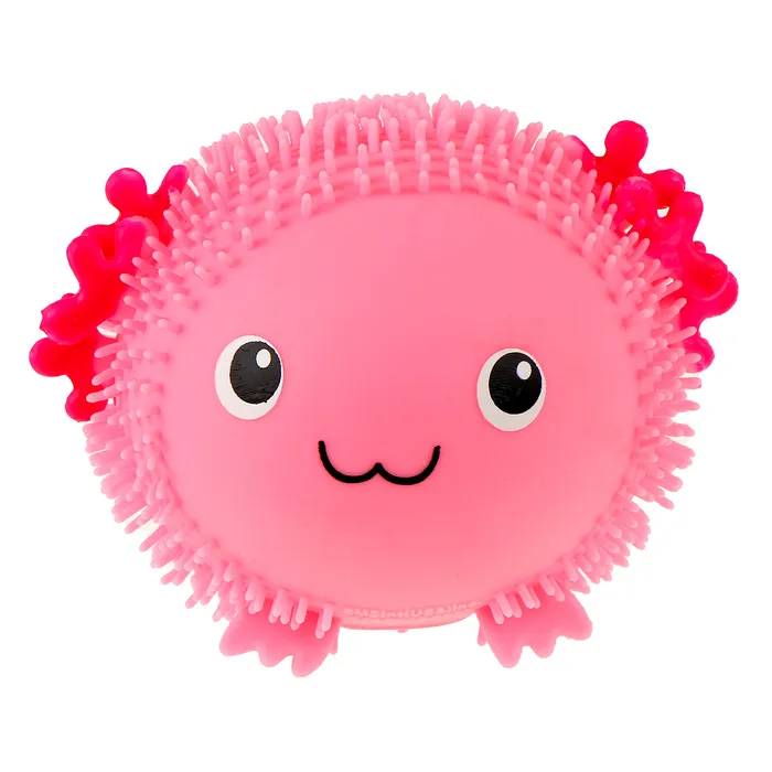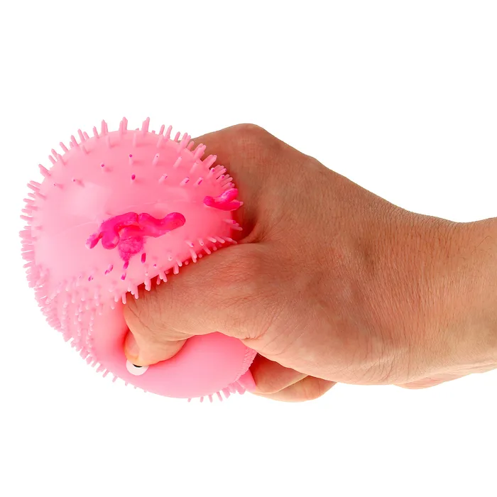 - При нажатии на игрушку снижается уровень стресса и развивается сила рук