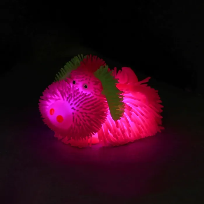 Внутри находится необычный механизм: при ударе он светится, как по волшебству, — очень зрелищно выглядит в темноте! Маленькие детки научатся фокусировать взгляд на предметах, ведь яркий свет обязательно привлечёт их внимание.