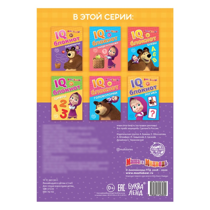 Серия IQ-блокнотов «Маша и Медведь» представлена шестью книгами: