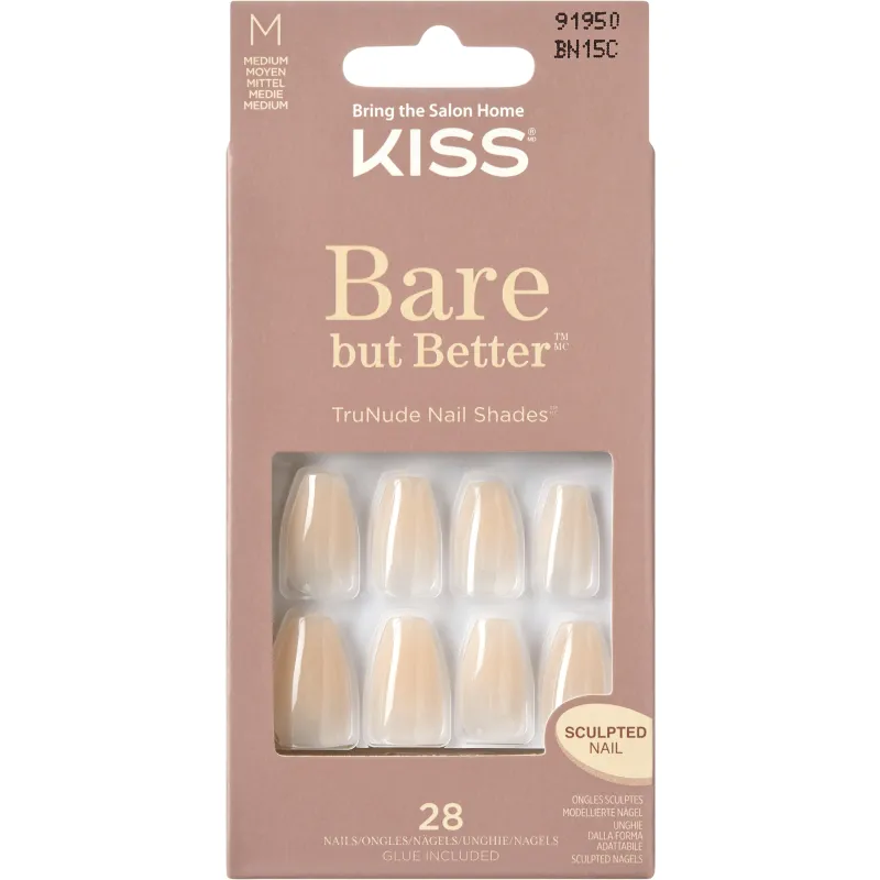 Накладные ногти Bare But Better Embrace It от Kiss – это полупрозрачные ногти, которые подарят вам естественный, но в то же время эффектный вид. В комплект входит 28 накладных ногтей и небольшая туба клея. Идеально подходит для тех, кто хочет подчеркнуть свою индивидуальность без лишних усилий.