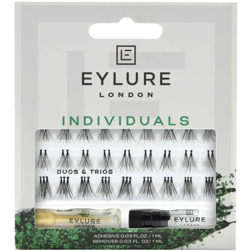 Eylure Duos & Trios - это набор пучков накладных ресниц, состоящий из пучков по два и три ресницы, который позволяет легко настроить желаемую густоту и выразительность результата. В комплект входит клей.
