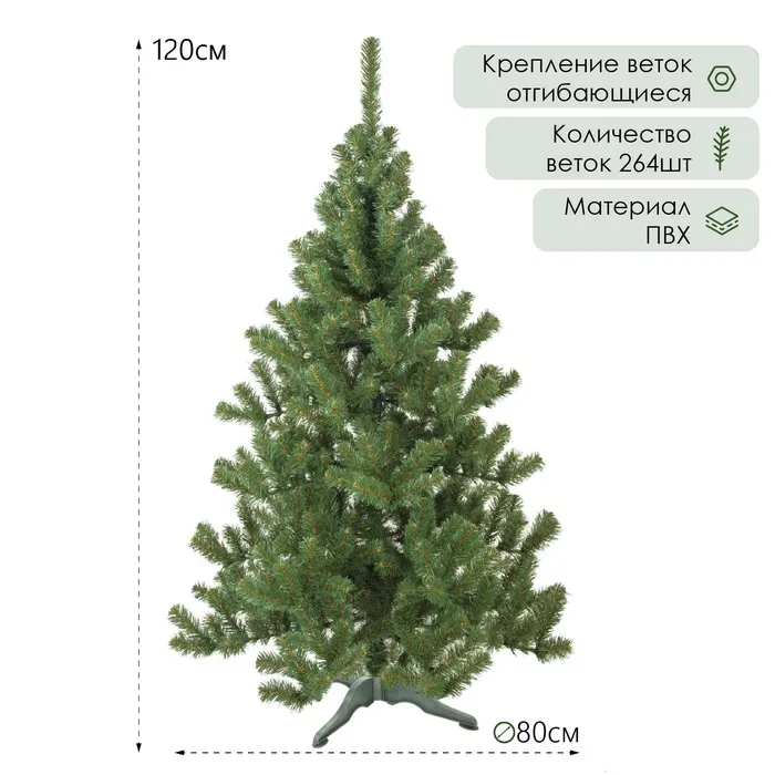 Искусственная ёлка «ЕлкиТорг. Барская», 120 см, d нижнего яруса 80 см, 264 ПВХ ветки отгибаются — Характеристики