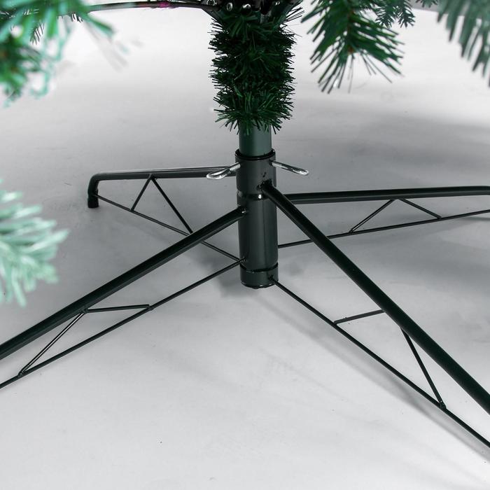 - Форма — шарнирное крепление веток создаёт плотную крону и равномерное пространство для размещения игрушек и гирлянд.