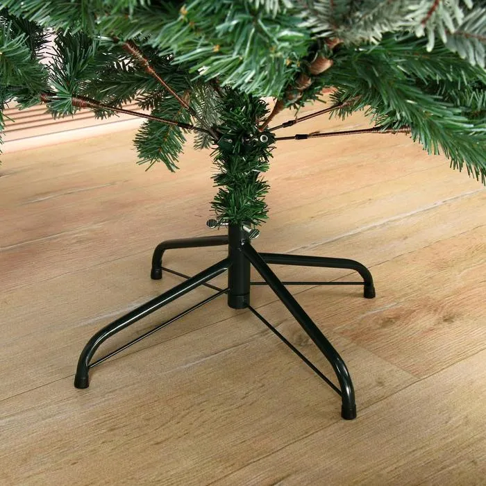 - Материал — металл, пластик и ПВХ обеспечивают устойчивость конструкции, долговечность и мягкость хвои при каждом прикосновении.