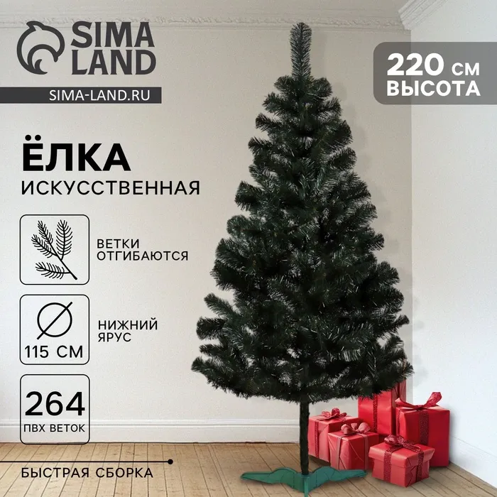 Искусственная ёлка «Канадская», 220 см, d нижнего яруса 115 см, 264 ПВХ веток отгибаются — Характеристики