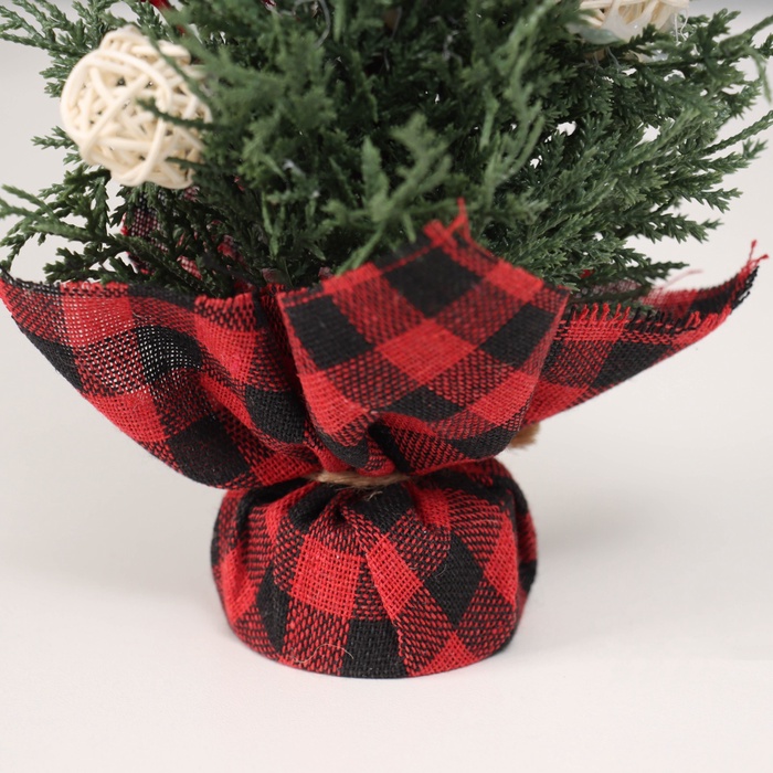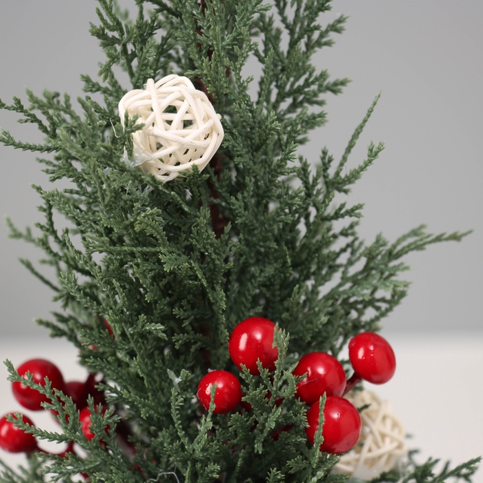 Искусственная ёлка литая настольная «Зимнее волшебство. С ягодками и шариками, в мешочке», 27×10 см, ветки отгибаются — Характеристики