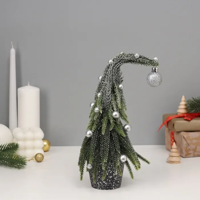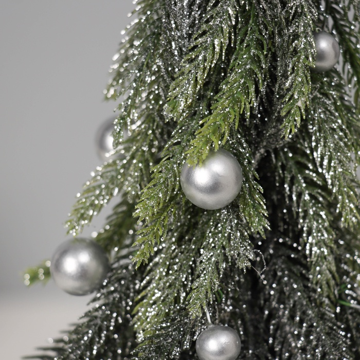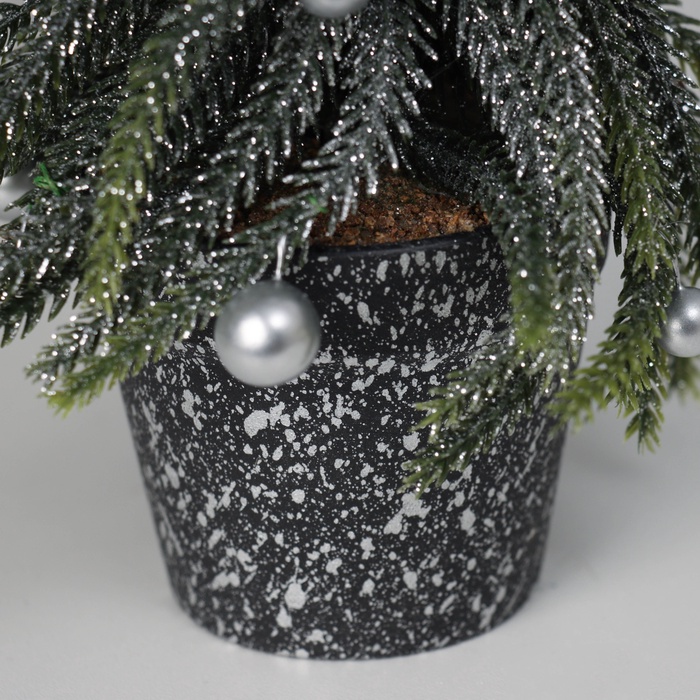 Искусственная ёлка литая настольная «Зимнее волшебство. С шариками и блёстками, в горшочке», 23×7.5 см, ветки отгибаются — Характеристики