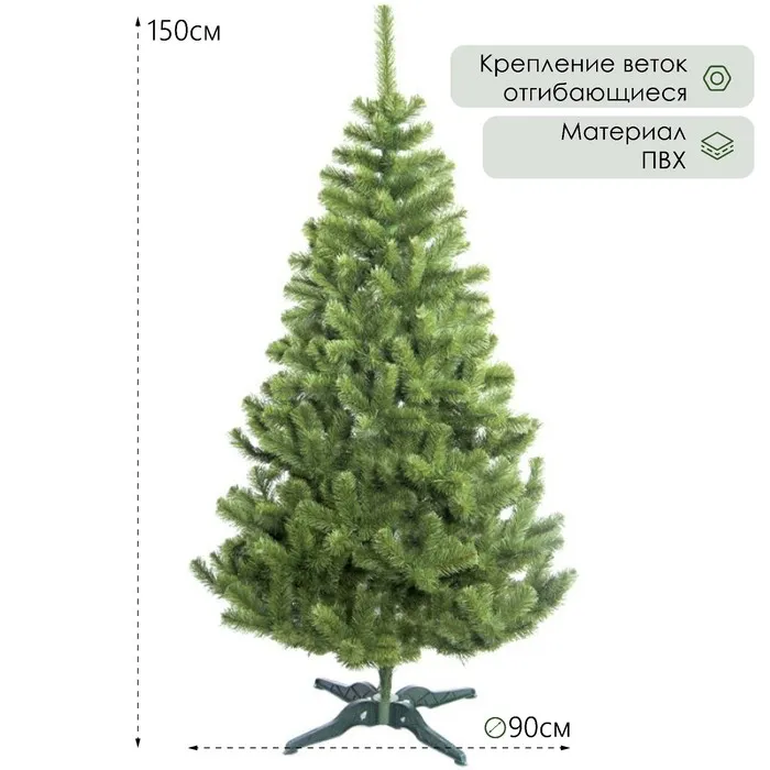 Искусственная ёлка Max Christmas «Лесная», 150 см, d нижнего яруса 110 см, ветки ПВХ отгибаются — Характеристики
