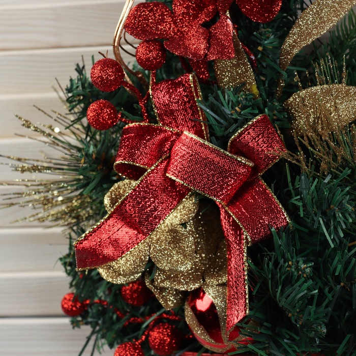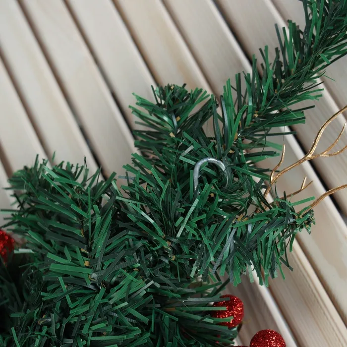 Настенная ёлка «Цветочная», 40 см, с красным декором — это доброжелательный и мягкий акцент для зимнего убранства. Подвесная модель высотой 40 см выполнена из ПВХ-веток с отгибающимся креплением, имеет зелёную хвою и украшения красного цвета — элемент оформления в стиле новогоднего барокко и советской эстетики для тех, кто ценит свет, объём и атмосферу праздника в формате настенного или дверного декора.
