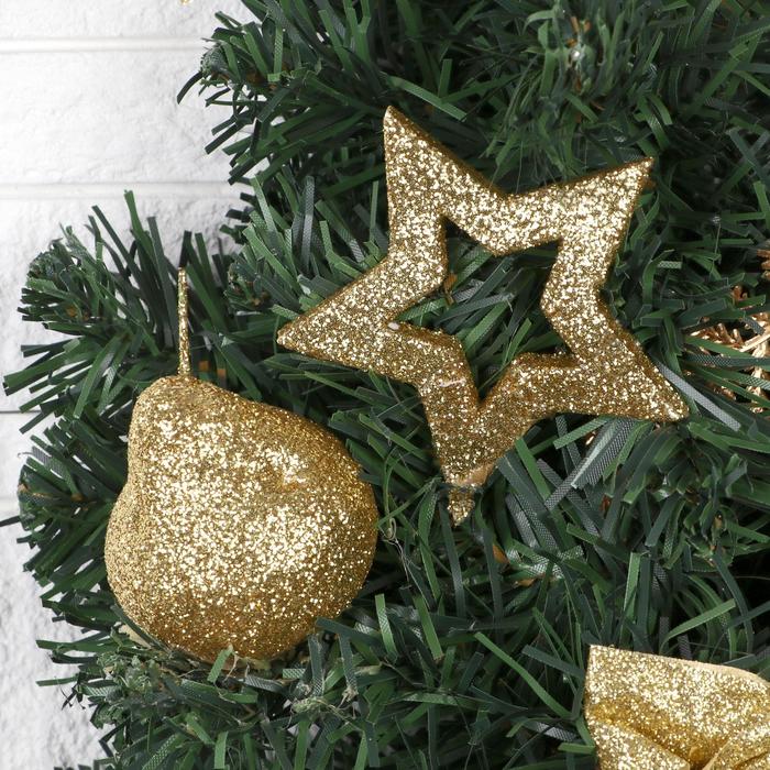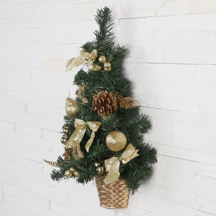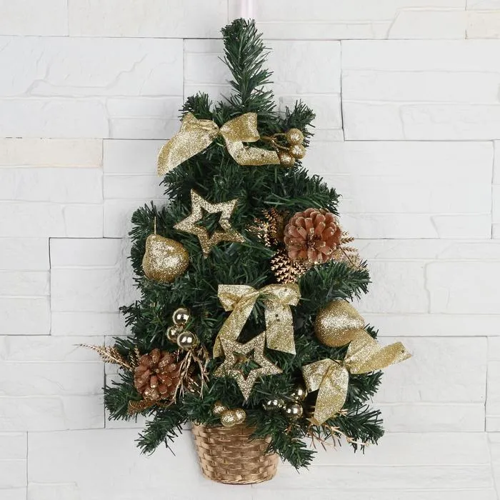 Искусственная ёлка настенная «Зимнее волшебство. Звёзды шишки», 45 см, золото, ПВХ ветки отгибаются — Характеристики