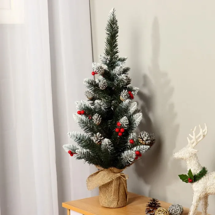 Искусственная ёлка настольная «Принцесса», с шишками и ягодами, 65 см, ПВХ ветки отгибаются, серебро — Характеристики