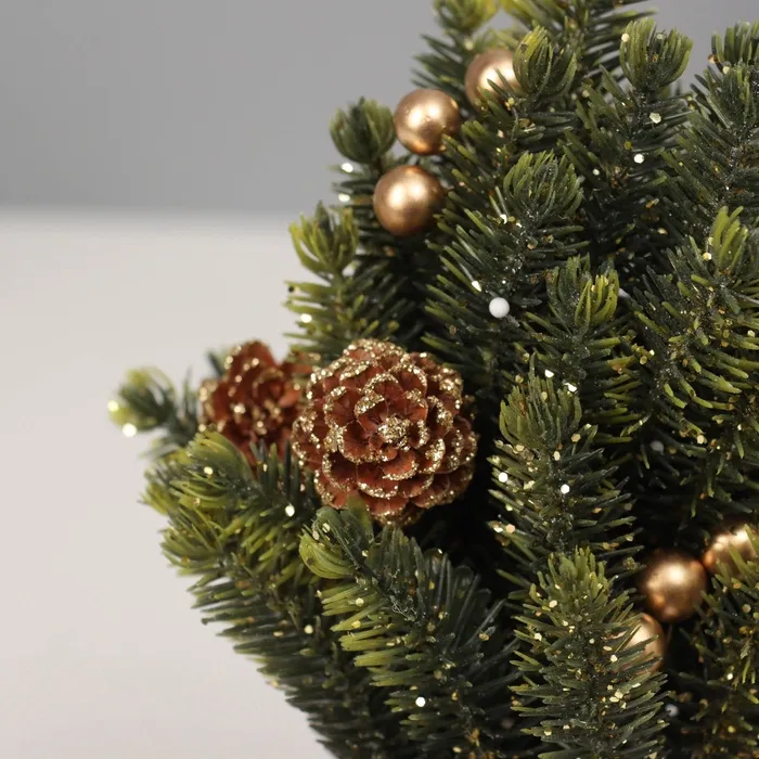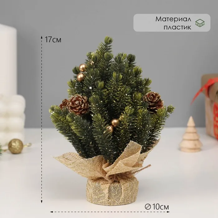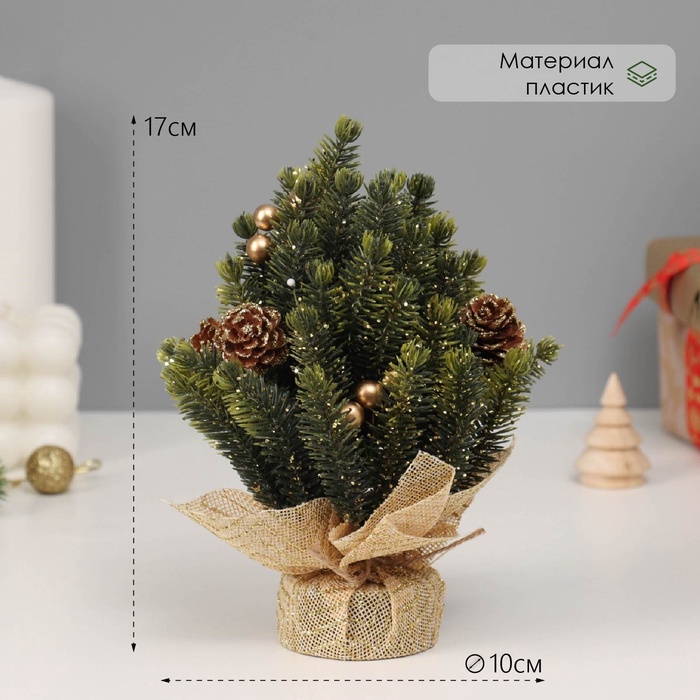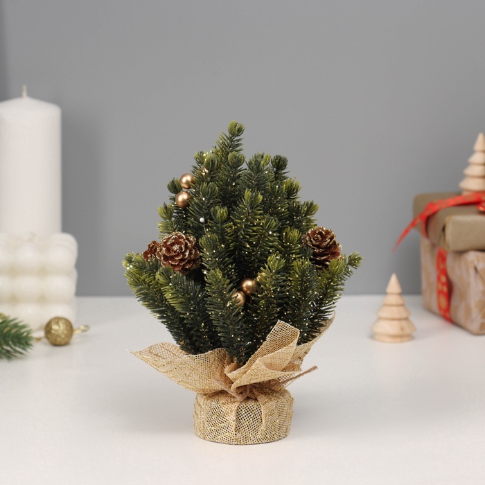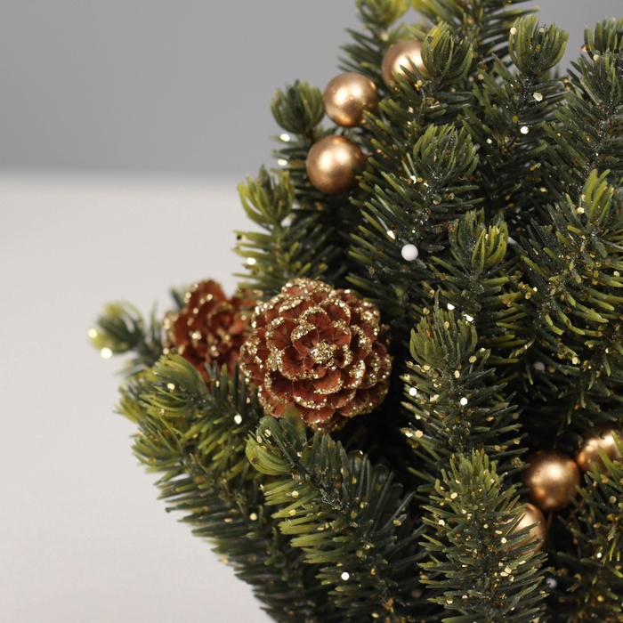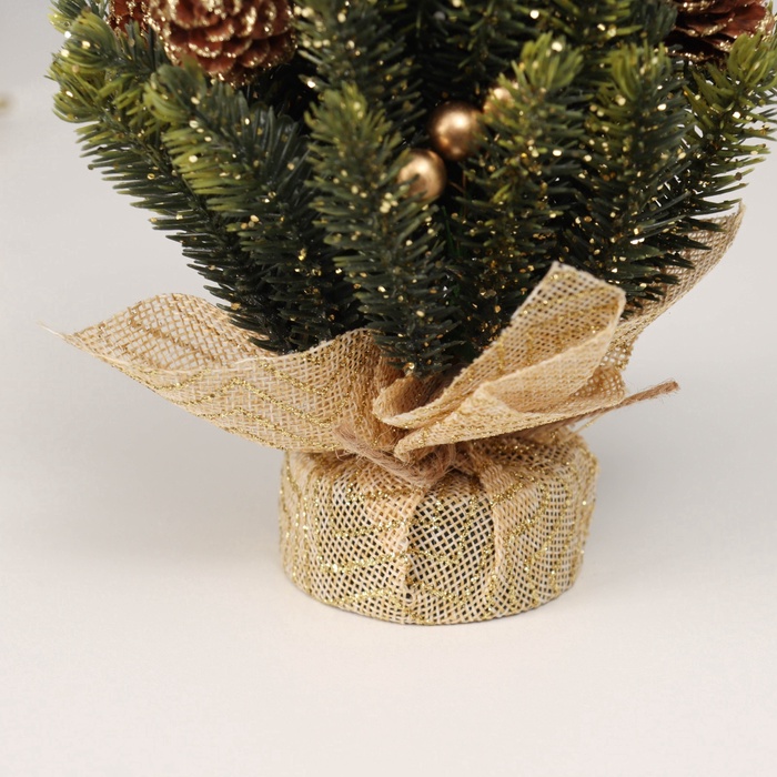 Искусственная ёлка настольная «Зимнее волшебство. Блеск», в мешочке, 17 см, ветки литые отгибаются, шишки, декор золотой — Характеристики
