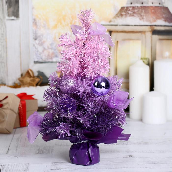 Искусственная ёлка настольная «Зимнее волшебство. Двойная», 30 см, с шарами, ветки ПВХ отгибаются, фиолетовая — Характеристики