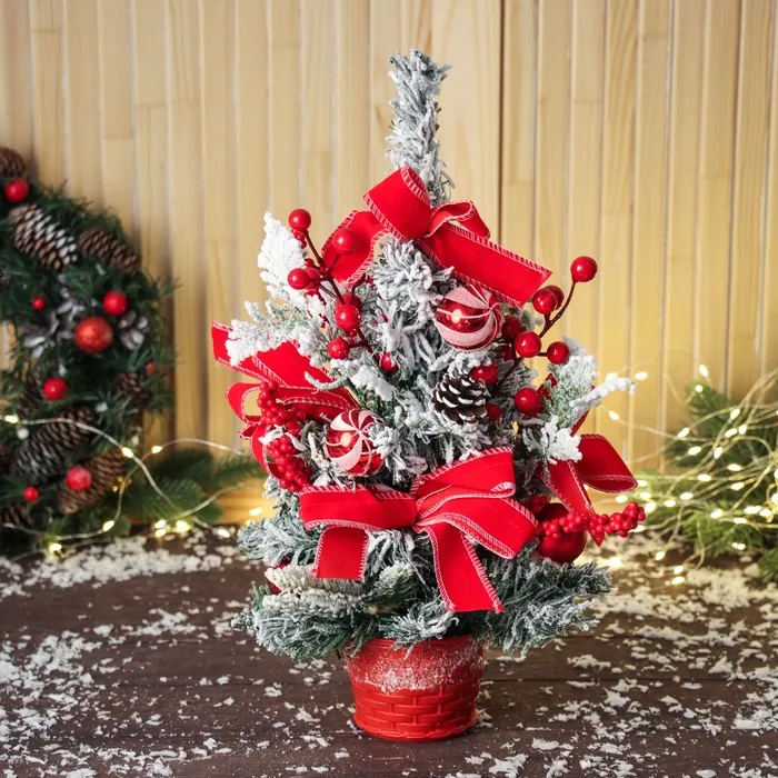 Искусственная ёлка настольная «Зимнее волшебство. Красный бант», 41 см, ветки ПВХ отгибаются — Характеристики