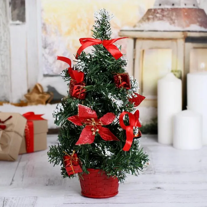 Эта компактная ёлка станет изящным акцентом в вашем доме или офисе, наполняя пространство теплом и настроением зимних праздников.