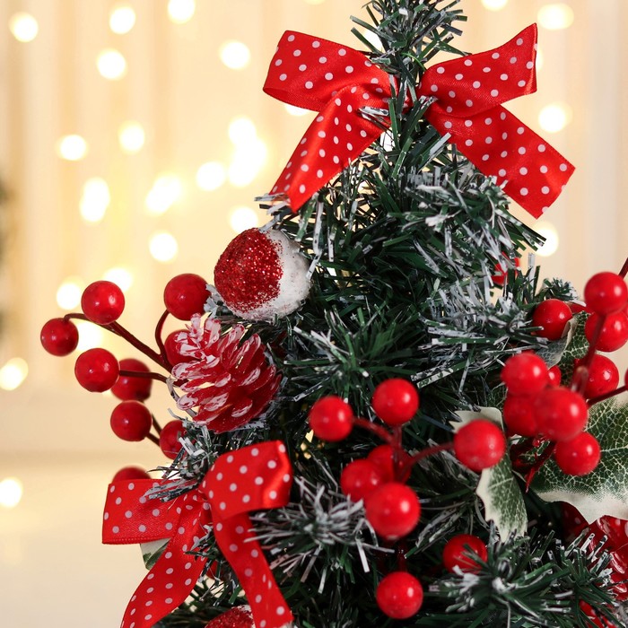 Искусственная ёлка настольная «Зимнее волшебство. Праздничная», бантик в горох, 15×29 см, ветки отгибаются — Характеристики
