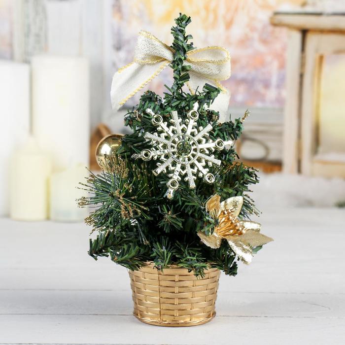 Искусственная ёлка настольная «Зимнее волшебство. Снежинка», 20 см, золото, ПВХ ветки отгибаются — Характеристики