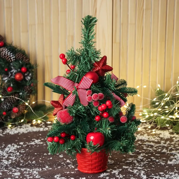 Искусственная ёлка настольная «Зимнее волшебство. Снежное яблочко», 39×21 см, ПВХ ветки отгибаются — Характеристики