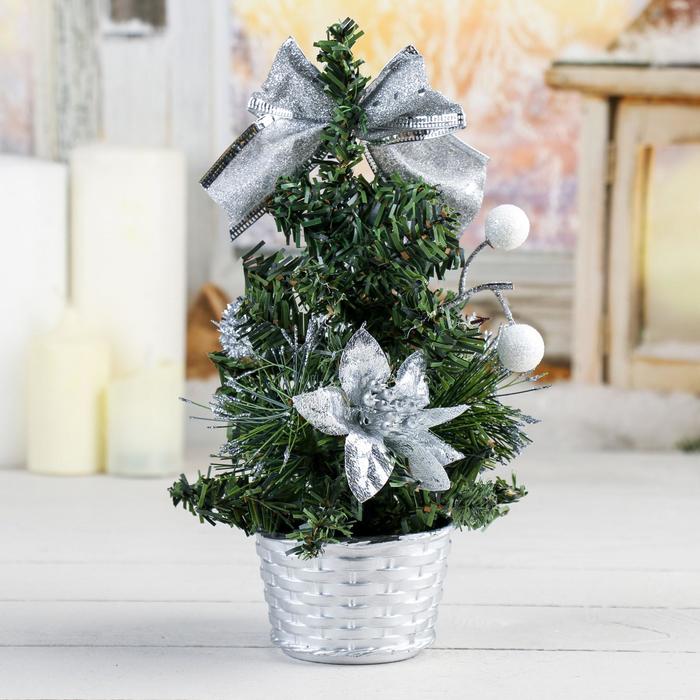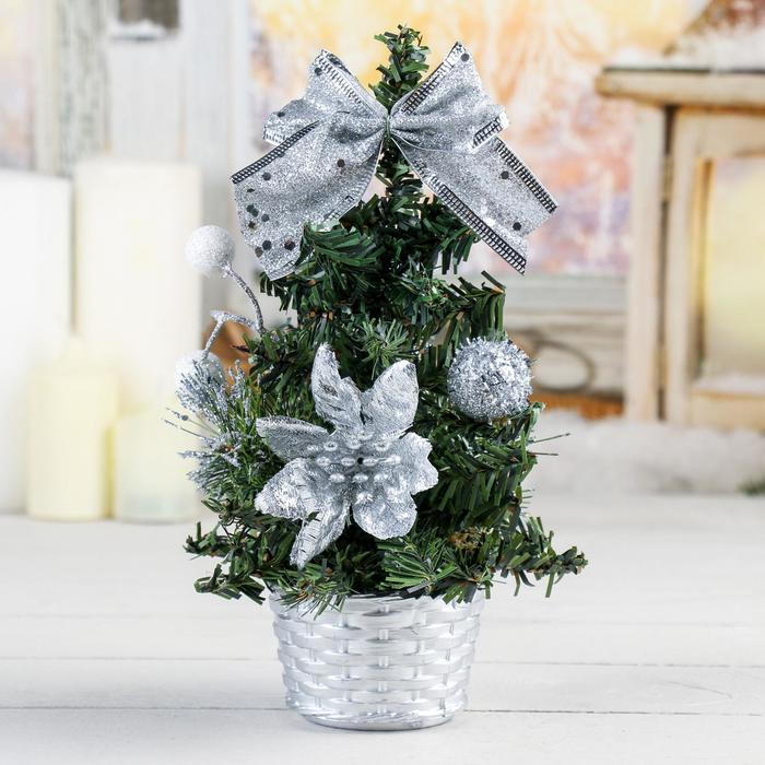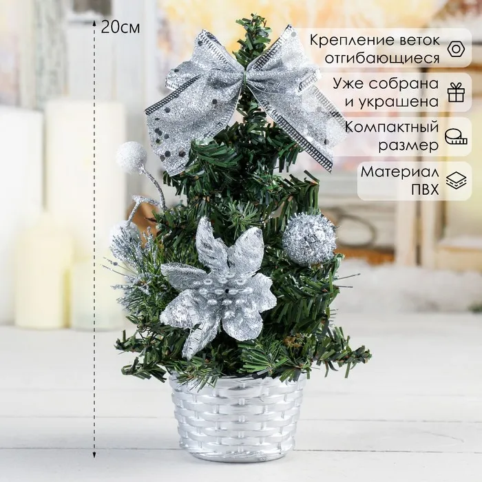 Искусственная ёлка настольная «Зимнее волшебство. Снежные шарики», 20 см, ПВХ ветки отгибаются, серебристый — Характеристики
