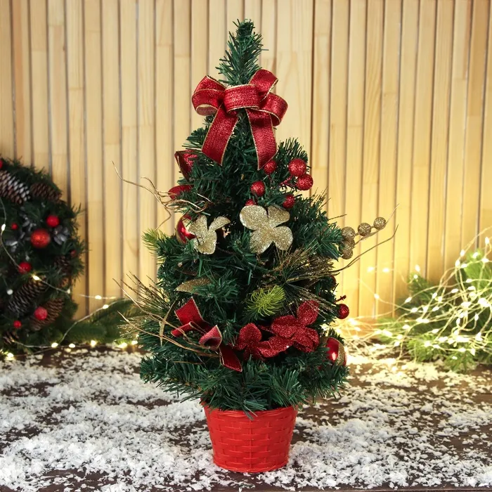 Искусственная ёлка настольная «Зимнее волшебство. Цветочная», 50×24 см, ПВХ ветки отгибаются — Характеристики