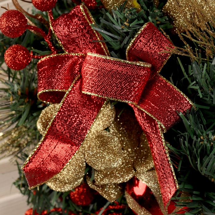 Настольная ёлка «Цветочная», 50 см, ПВХ ветки с красным декором — это яркий и доброжелательный акцент для новогоднего убранства. Искусственная модель высотой 50 см выполнена из ПВХ-веток с отгибающимся креплением, имеет зелёную хвою и украшения в виде ёлочных игрушек красного цвета — украшение в стиле новогоднего барокко и советской эстетики для тех, кто ценит свет, объём и атмосферу зимнего праздника в домашнем или офисном пространстве.