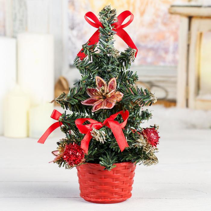 Искусственная ёлка настольная «Зимнее волшебство. Цветок», 20 см, красный, ПВХ ветки отгибаются — Характеристики