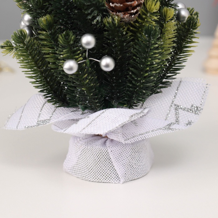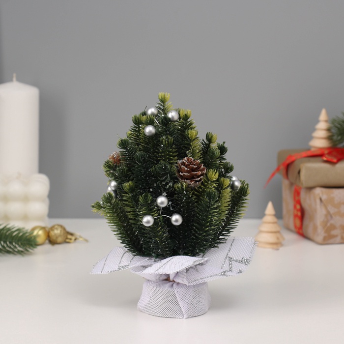 Настольная ёлка «Звезда», 17 см, литые ветки — это компактный и мягкий акцент для новогоднего убранства. Искусственная модель высотой 17 см выполнена из литых ПВХ-веток с отгибающимся креплением, имеет зелёную хвою и серебристые шишки в качестве декора — украшение в универсальном стиле, сочетающем ар-деко, советские мотивы и скандинавский минимализм. Подходит как для домашнего пространства, так и для подарочного оформления.