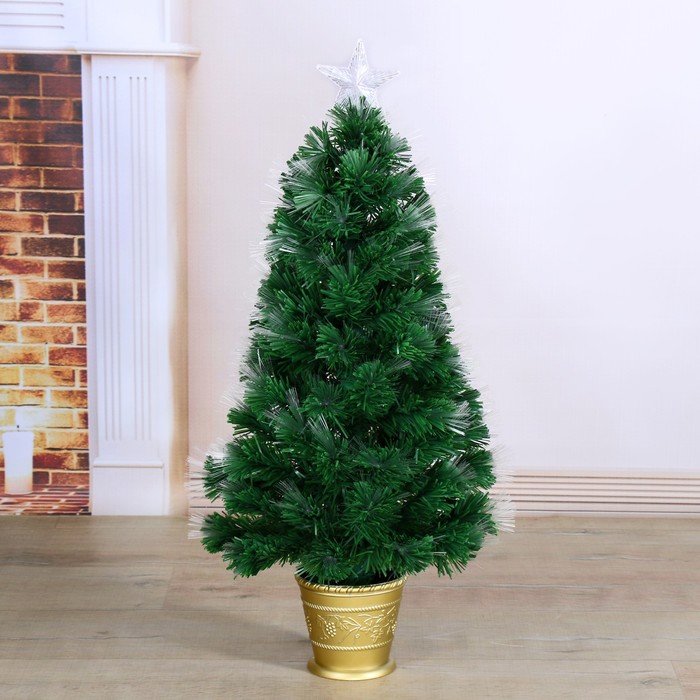 Искусственная ёлка с гирляндой Led настольная «Зимнее волшебство. Пучок перелив», 90 см, d нижнего яруса 50 см 80 ПВХ веток отгибаются — Характеристики
