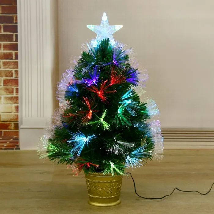 Искусственная ёлка с гирляндой Led настольная «Зимнее волшебство. Пучок радужный», 60 см, d нижнего яруса 35 см, 55 ПВХ веток отгибаются — Характеристики