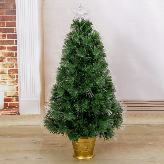 Искусственная ёлка с гирляндой Led настольная «Зимнее волшебство. Пучок радужный», 90 см, d нижнего яруса 47 см, 80 ПВХ веток отгибаются — Характеристики