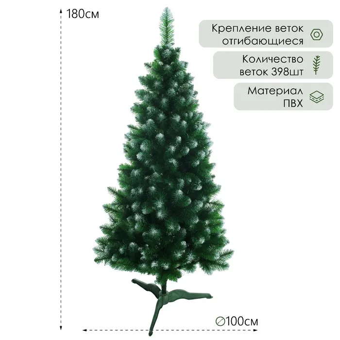 Искусственная ёлка с инеем «Королева белоснежная», премиум 180 см, d нижнего яруса 100 см, ПВХ 398 веток отгибаются — Характеристики