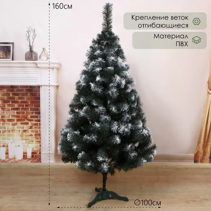 Искусственная ёлка с инеем «Северная», 160 см, d нижнего яруса 100 см, ПВХ ветки отгибаются — Характеристики
