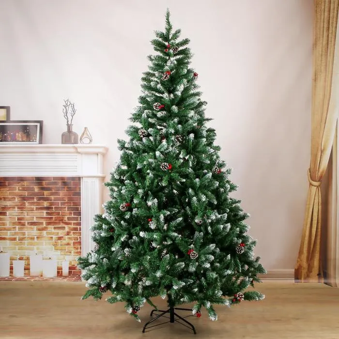 Искусственная ёлка «С инеем и ягодами, 210 см» — это мягкий и доброжелательный акцент для новогоднего убранства. Напольная модель высотой 210 см выполнена из 1100 ПВХ-веток на крючках, имеет зелёную хвою и декор в виде белых шишек и красно-коричневых ягод — украшение в универсальном стиле, сочетающем ар-деко, советские мотивы, скандинавскую простоту и фьюжн-подход. Подходит тем, кто ценит свет, объём и зимнюю атмосферу без лишней пестроты.