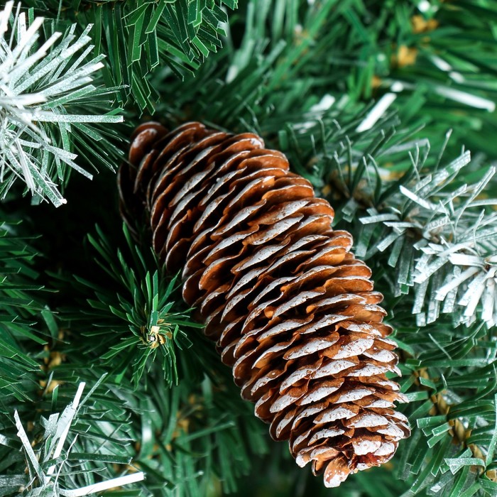 Эта ёлка делает дом частью зимней сказки. Зелёные иголки с белыми акцентами работают вместе, чтобы передать дух чуда и семейного ожидания подарков. Используйте её как самостоятельное дерево или как основу для дополнительных украшений — одинаково хорошо усиливает атмосферу торжества и доброжелательность дома.