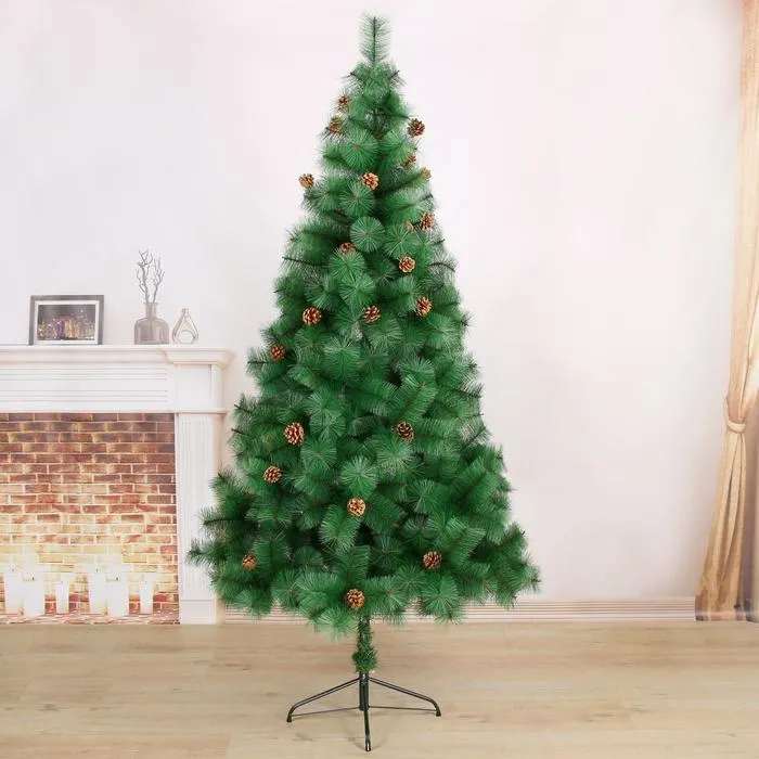 Эта модель подходит как для традиционных праздничных украшений, так и для экспериментов с новогодним декором. Зелёная хвоя с коричневыми шишками создаёт универсальную основу, которая сочетается с любыми цветами и стилями. Ёлка не требует подключения к сети или использования освещения, сохраняя свою эстетику и функциональность.