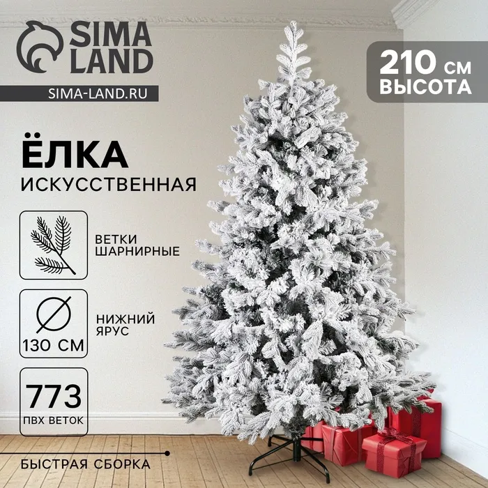Искусственная ёлка заснеженная «ЕлкиТорг. Аляска», 210 см, d нижнего яруса 130 см, 773 смешанные шарнирные ветки — Характеристики