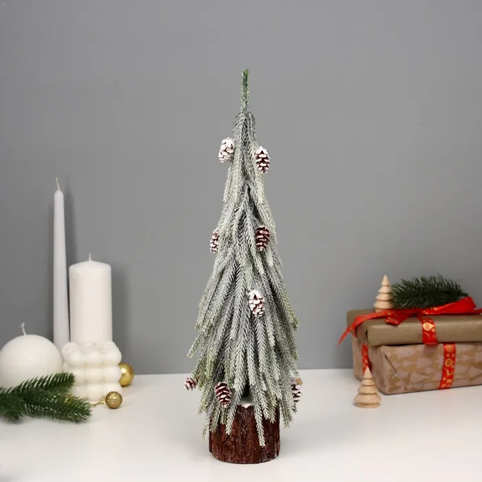 Эта настольная ёлка станет не только украшением, но и символом тепла и радости в зимние вечера. Разместите её на видном месте, и она будет радовать вас своим ярким видом, наполняя пространство атмосферой праздника. Каждая деталь этой ёлки, от заснеженных веток до натуральных шишек, будет напоминать о тепле и уюте домашних праздников.
