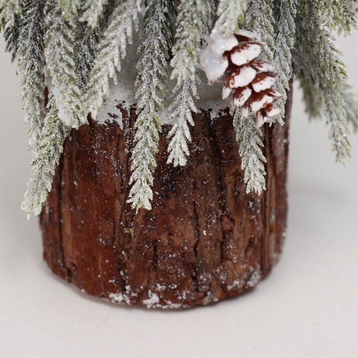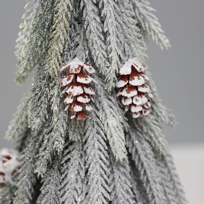 Искусственная ёлка заснеженная настольная «Зимнее волшебство. Длинные ветки» горшочке, 38 см, с шишками, ветки литые отгибаются — Характеристики